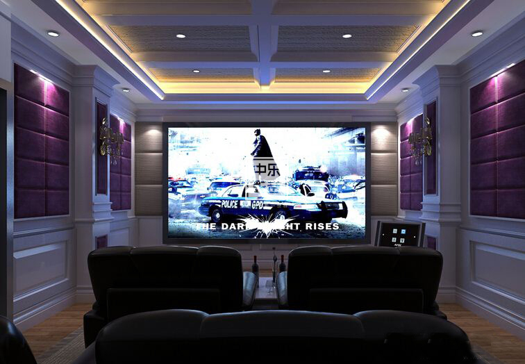 而獨(dú)立影音房處理起來(lái)就要嚴(yán)肅得多。獨(dú)立影音房沒(méi)有了客廳的那些環(huán)境光干擾問(wèn)題,可以從效果最優(yōu)的角度考慮,所以基本都會(huì)用畫(huà)框幕(相對(duì)于電動(dòng)幕更平整,用久了也不會(huì)卷邊,故障率基本為0)。這里也可以分為2種情況,使用透聲幕、不透聲幕。不管用透聲幕還是不透聲幕,都要盡量保證視聽(tīng)室環(huán)境是暗色調(diào)(使用深色裝修材料),避免光污染,前墻上畫(huà)框幕的周?chē)彩且粯印?