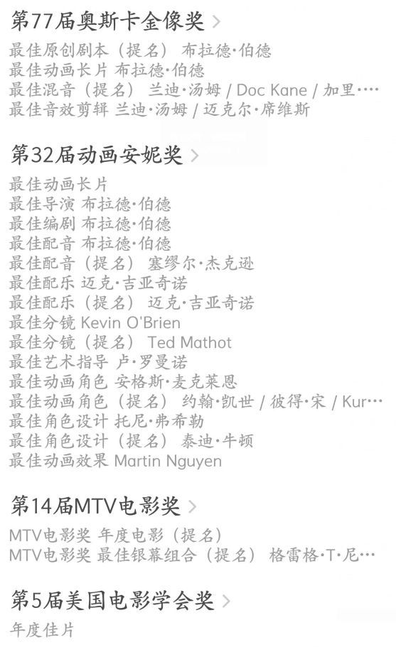 除了獲得超高的票房之外,它獲得的獎項也是尤其多,其中最有分量的是獲得了第77屆奧斯卡最佳動畫長片。