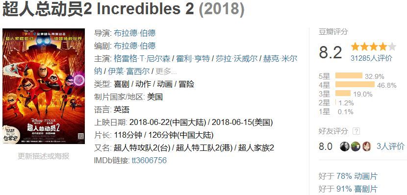 不管是北美還是國內(nèi)院線,《超人總動員2》都用不俗的票房與口碑證明了自己!