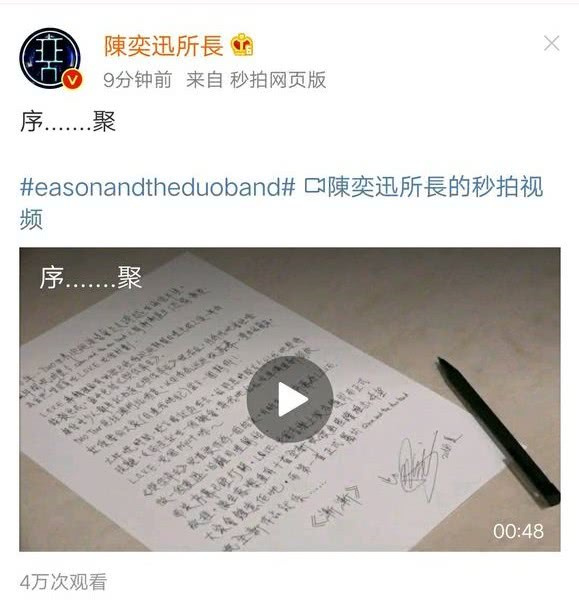 早在六月八號,陳奕迅就在微博上發(fā)出了新歌的“預(yù)告”。