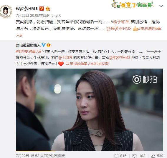 《獵毒人》正在熱播,呂云鵬成功破譯大哥所留密碼——保護(hù)臥底,公安部決定啟動(dòng)802計(jì)劃,派江伊楠作為呂云飛的替代者重臥楚門(mén)。在最新的劇情中,兩人一段“難言”的告別,賺足了觀眾眼淚。侯夢(mèng)莎所呈現(xiàn)了“炸裂式”的演技,吸粉無(wú)數(shù)。對(duì)于這一場(chǎng)戲,我們的男女主角也是印象深刻的,在微博上還來(lái)了個(gè)隔空互動(dòng)。