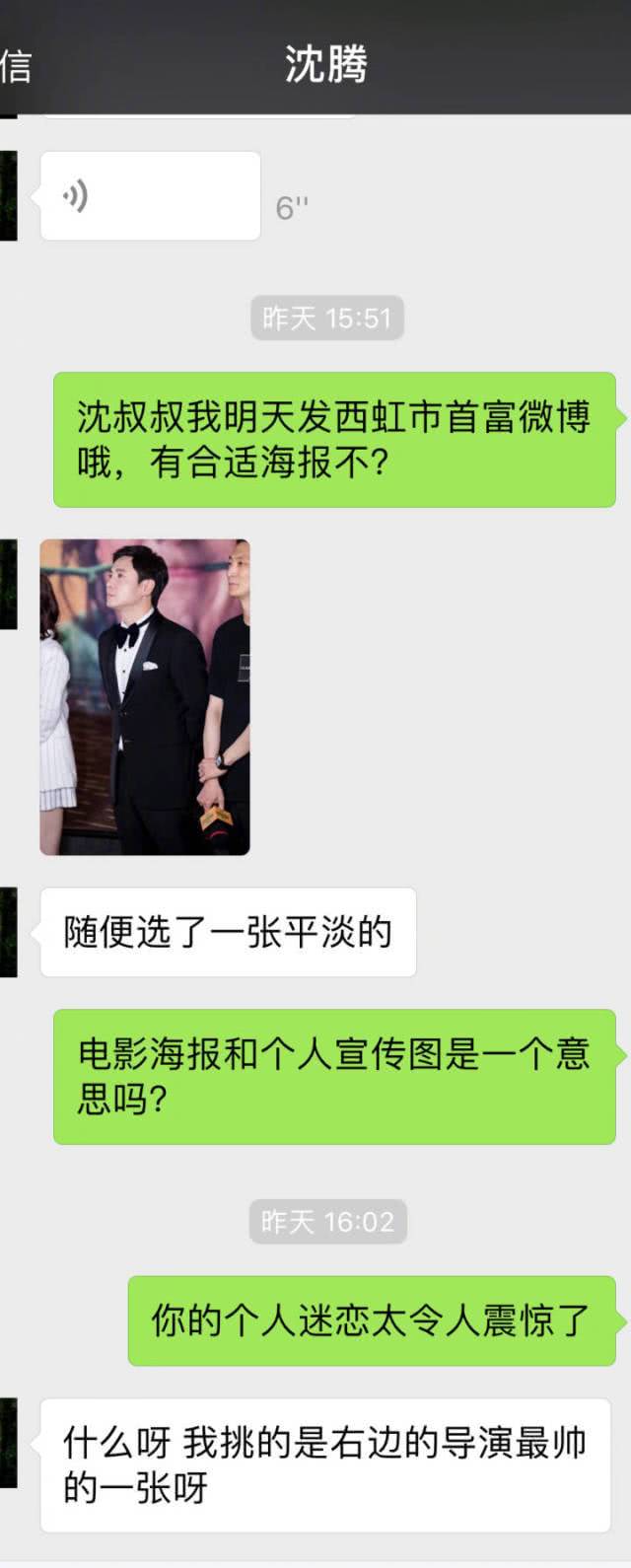 和主角王多魚很像的一點(diǎn),沈騰本人也是充滿了幽默細(xì)胞,還滿滿的“自戀”。何炅要給他的新電影宣傳一下管他要張照片,結(jié)果沈騰果斷發(fā)了自己的帥照,還說這是導(dǎo)演最帥的照片,讓人哭笑不得,這令人震驚的個(gè)人迷戀。