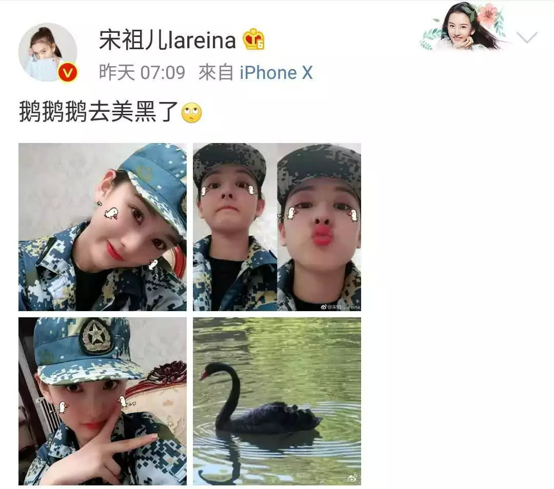 近日,女演員宋祖兒曬出自己的軍訓(xùn)照,并配文稱:“鵝鵝鵝去美黑了”最后還加上了個(gè)白眼表情,看上去對軍訓(xùn)還是怨念頗深啊~