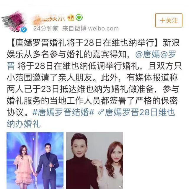 羅晉、唐嫣這對情侶的愛情終于要修成正果了,25日,有媒體曝光:羅晉、唐嫣將于28日在維也納舉行婚禮,據(jù)悉兩個人只請了小部分的親友參加婚禮,這也完全符合兩個人低調(diào)的風(fēng)格。