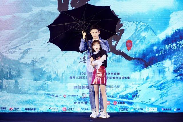 而飾演男主寧缺的陳飛宇和飾演女主桑桑的宋伊人現(xiàn)場(chǎng)撒狗糧,在那把“信物”傘下,完美詮釋什么是最萌身高差。