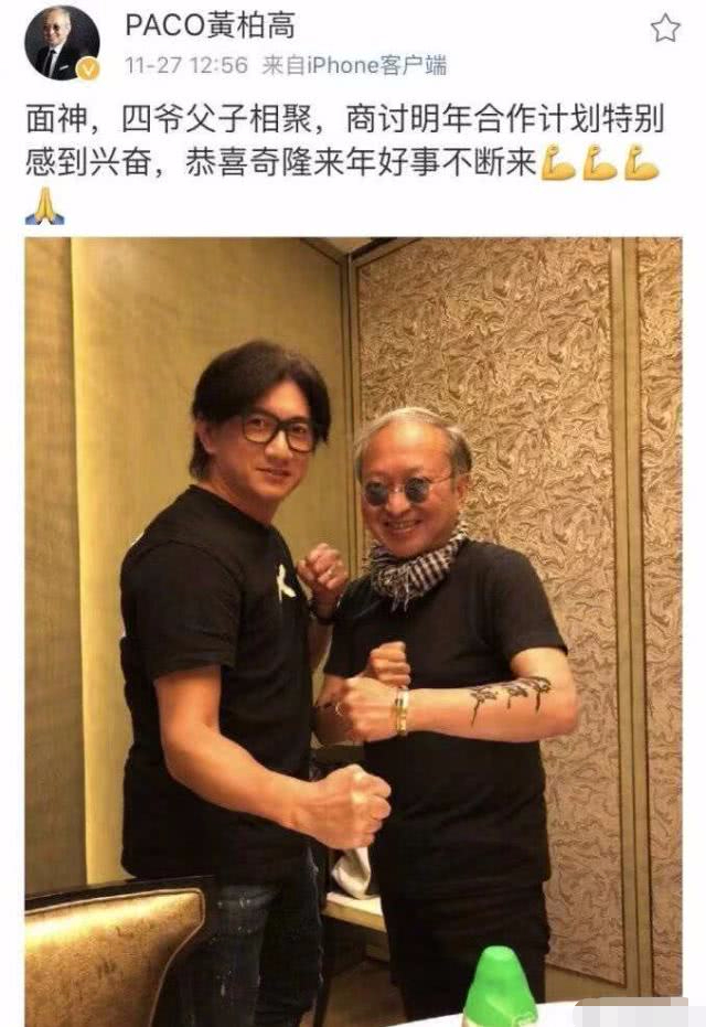 “金牌經(jīng)紀(jì)人”黃柏高在微博上曬出和吳奇隆的合照,雖然沒(méi)有細(xì)說(shuō),但也含蓄的表示,“四爺”吳奇隆明年會(huì)“好事不斷”。