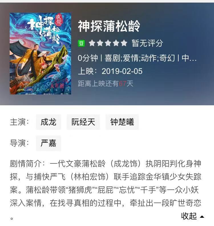 《神探蒲松齡》定位于喜劇,一眾妖魔鬼怪上線,又有成龍大哥撐場(chǎng),相信這部電影上映也會(huì)有一眾粉絲捧場(chǎng),成龍版的蒲松齡,會(huì)成為這部電影的票房保障嗎?2019年春節(jié),這部電影會(huì)給出你最直接的答案!