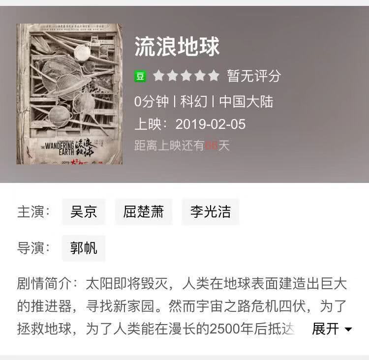 《流浪地球》講述的是太陽(yáng)即將毀滅,為了拯救人類,一群有“力量”的人,帶領(lǐng)地球“大遷徙”的故事?!读骼说厍颉范ㄎ挥诳苹茫m然與喜劇不沾邊,但是春節(jié)檔原本就是電影題材全面開(kāi)花的檔期,再加上吳京《戰(zhàn)狼2》積攢下來(lái)的口碑,如果《流浪地球》的故事夠精彩,它也可能會(huì)成為2019年春節(jié)檔最大的黑馬。