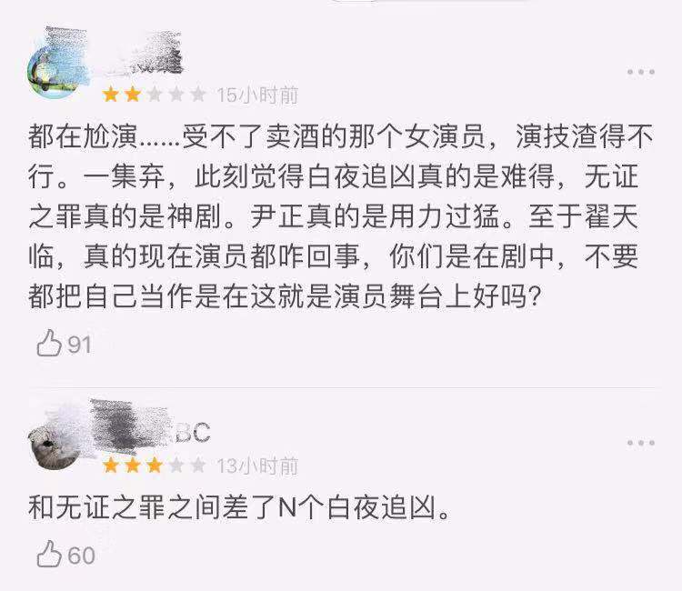 配角演技尷尬,主角開(kāi)局用力過(guò)猛,尤其是尹正,很多粉絲覺(jué)得《原生之罪》主角的演技和《無(wú)證之罪》、《白夜追兇》差了一條街。