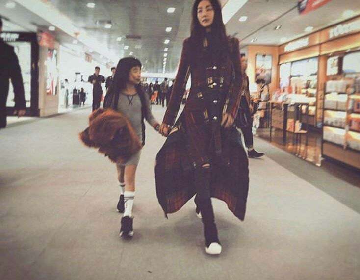 小小只卻要求別人要叫她姐姐的Grace現(xiàn)在終于是個(gè)大姐姐了。臉還是圓圓的,讓人想起她那句“我不是胖嘟嘟,我只是肉很多”,不過,小短腿可是完成了到大長腿的轉(zhuǎn)變。“姐姐”小裙子配長筒襪牽著媽媽的手,完全繼承了媽媽的身高腿長,母女倆氣場十足,簡直是兩雙行走的長腿。哥哥Joe則越來越像爸爸曹格,牛仔褲高幫鞋滿滿嘻哈范。